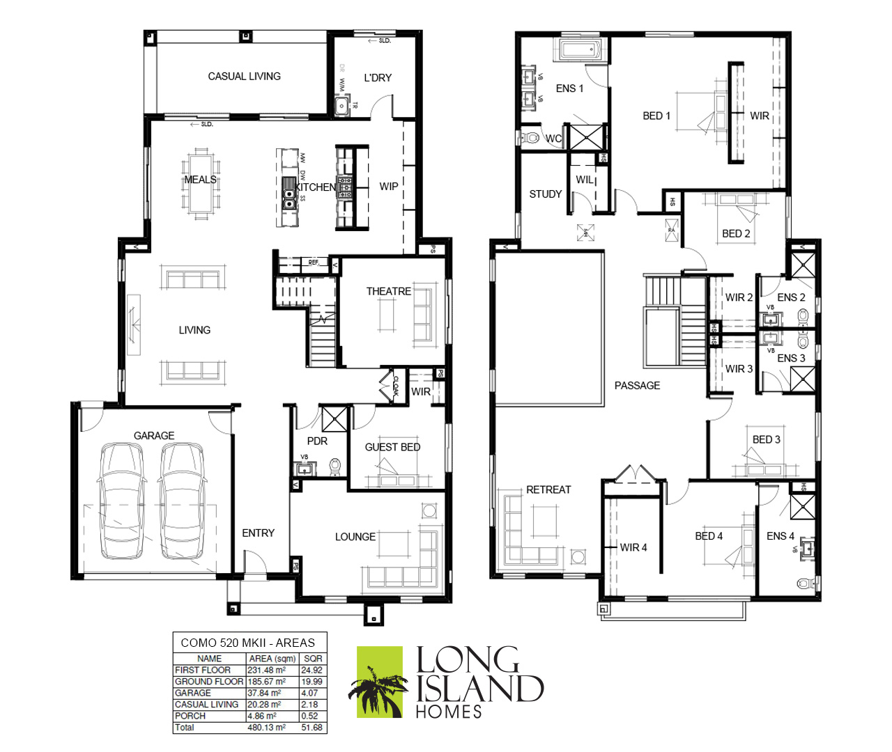 Suitable for an 16 metre wide lot. Comprising, five bedrooms, five bathrooms, open plan living and a double garage.